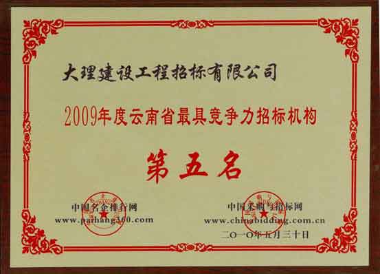 2009年度云南省最具競爭力招標機構(gòu)榮譽