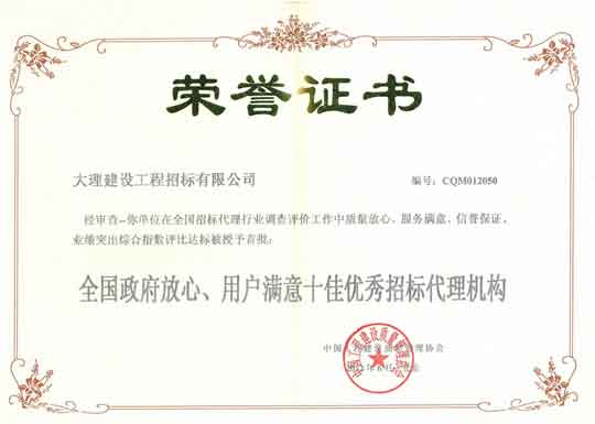 全國政府放心,用戶滿意十佳優(yōu)秀招標代理機構