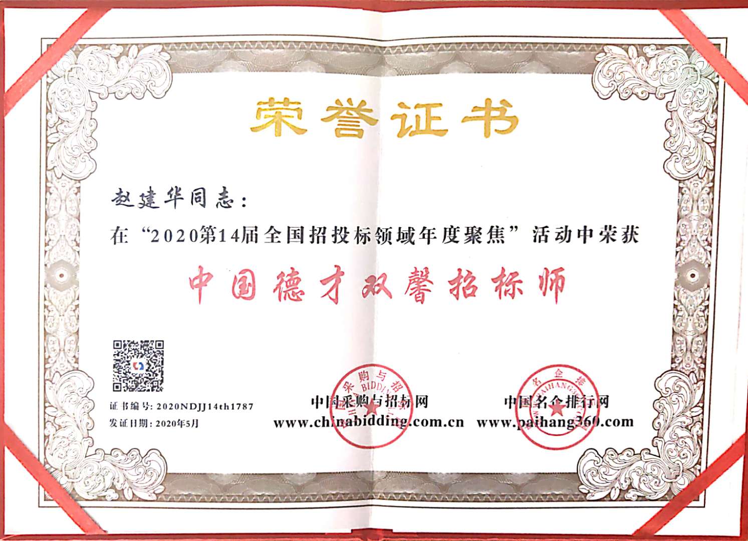 趙建華同志榮獲中國德才雙馨招標(biāo)師